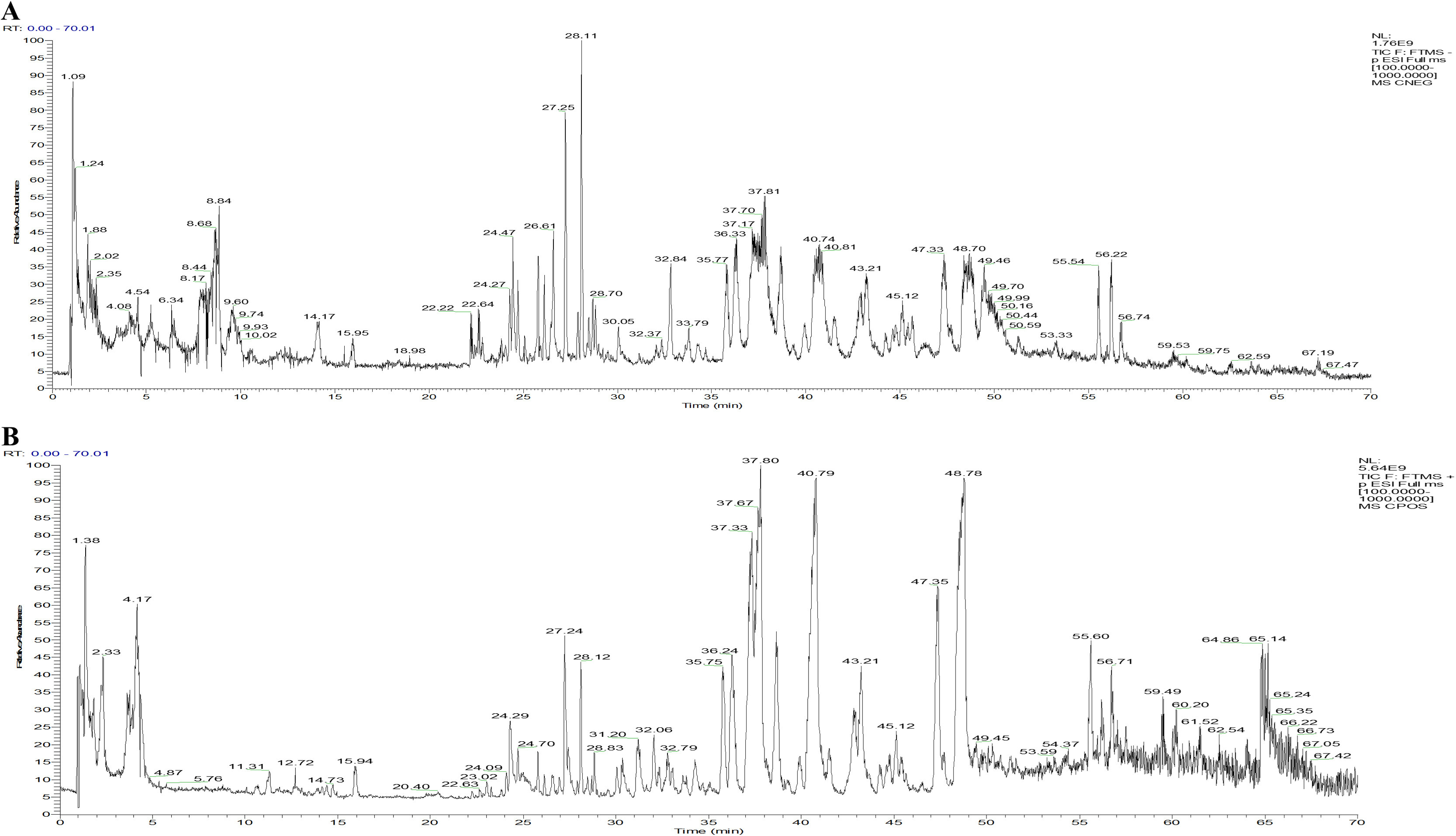 在血液中鉴定出11种瓜蒌成分,其中大多数为黄酮类,包括槲皮素-3-O-β-芸香糖苷、Diosmetin、Chrysoeriol、木犀草素、木犀草素-7-O-β-D-葡萄糖苷、芹菜素、芹菜素-7-葡萄糖苷、Diosmetin-7-葡萄糖苷、槲皮素-3-O-α-D-核苷。更详细的信息列于图2和补充数据的表S4中。这一发现表明,瓜蒌的药效物质基础与其含有的黄酮类化合物密切相关,为该领域的进一步研究提供了基础。利用多反应监测模式并与标准物质比较,对TPTF的成分进行了评估。已鉴定的成分包括羟基苯甲酸、槲皮素-3-O-β-芸香糖苷、Diosmetin-7-葡萄糖苷、槲皮素、木犀草素-7-O-D-葡萄糖苷、山奈酚、槲皮素、木犀草素-7-O-β-D-葡萄糖苷、香草酸、芹菜素、Diosmetin。此外,对比分析表明,血清化学成分分析中检测的物质与TPTF高度一致,表明预期的黄酮定向分离已有效完成,为后续实验奠定了基础。